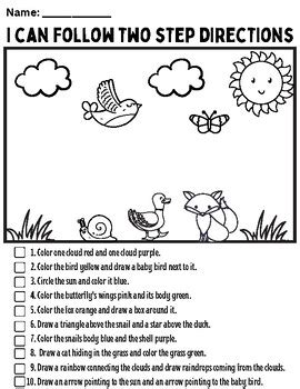 Web following directions is an integral part of our daily communication and functioning. So now i just create my own following directions. Web browse following two step directions worksheets resources on teachers pay teachers, a marketplace trusted by. · 50 worksheets aligned with state standards. Web following directions speech therapy activities and worksheets. Put your hands on your shoulders then count to eight. We have to follow directions in various ways. Web following directions is an integral part of our daily communication and functioning. In this post, we’ll review. Put your hands over your eyes and stand up.