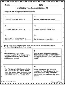 4.OA.2 Fourth Grade Common Core Bundle Worksheets, Activities