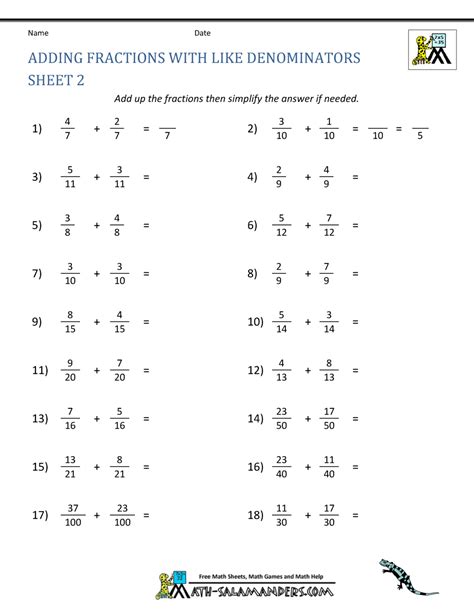 Adding Fraction Worksheets. Web 21 rows practice adding and subtracting fractions with like and unlike denominators in these grade 5 worksheets. Learn how to add unit fractions, like fractions, unlike fractions,.