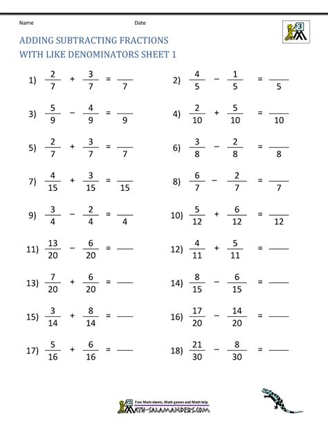 add subtract fractions worksheets for grade 5 k5 learning grade 5