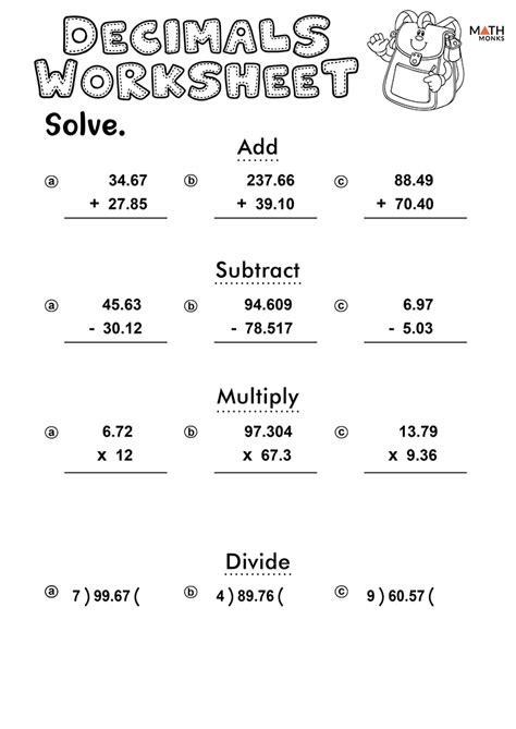 REPACK Adding Subtracting Multiplying And Dividing Decimals Worksheet