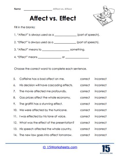 Affect Vs Effect Worksheet Pdf With Answers. Wars affect everyone, and their destructive effects last for generations. A noun that means the result of a change.