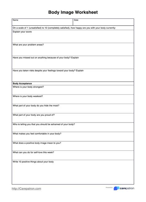 Body Image Worksheets. Your body image is how you think and feel about your body. Throughout life, you’ve likely received many messages that affect your body image.