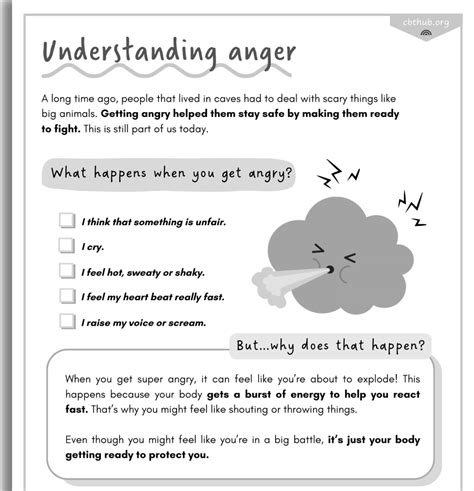 Cbt Anger Worksheets. This anger worksheet uses the cbt model to explain. Anger worksheet describes six techniques for managing anger.