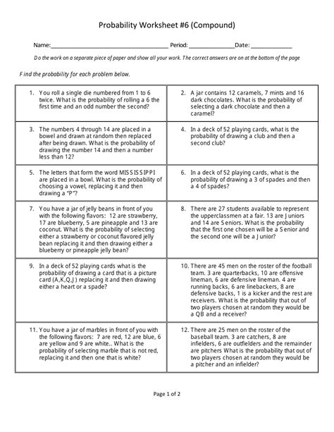 Compound Probability Worksheets WorksheetsGO