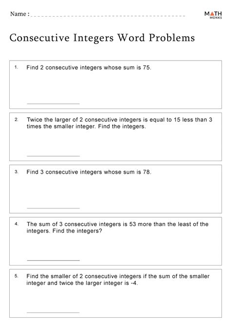 Consecutive Integer Word Problems Worksheets With Answers Pdf. Find two consecutive integers whose sum is 45. Web find two consecutive odd integers.