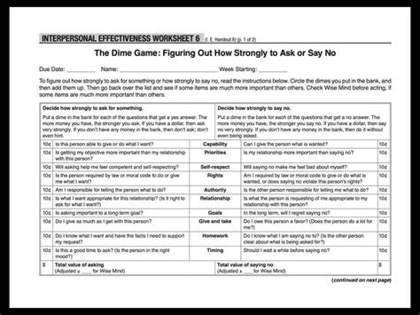 Dbt Dime Game Worksheet. Web iveness worksheet 6 (i. The dime game—figuring out how strongly to ask or say no interpersonal effectiveness.