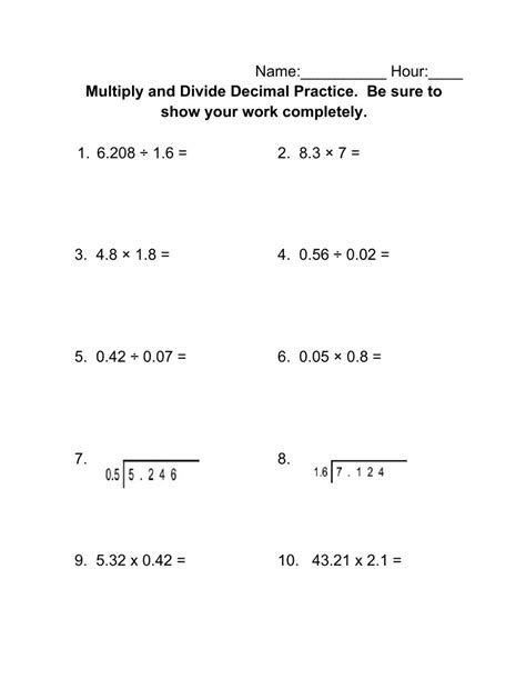 Web on this page, you will find decimals worksheets on a variety of topics including comparing and sorting decimals, adding,. 0.5 × 0.4 = 2.5 × 0.2 = 1.25 × 0.5 = 0.75 × 0.2 = 1.92 × 0.8 = 0.55 × 0.4 = find. Web this versatile generator produces worksheets for addition, subtraction, multiplication, and division of decimals for. Web download multiplying and dividing decimals worksheet pdfs. Web 5th grade multiplying decimals worksheets, including multiplying decimals by decimals, multiplying decimals by whole numbers,. These math worksheets should be practiced regularly and are free. Web multiplying and dividing decimals find the product. Web on this page, you will find decimals worksheets on a variety of topics including comparing and sorting decimals, adding,.