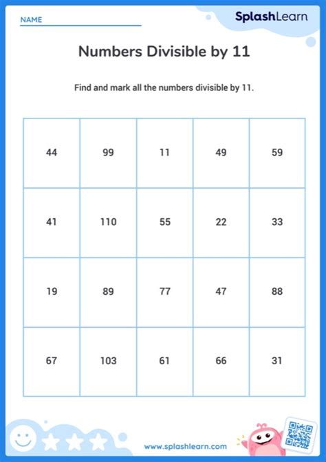 Divisible By 11 Worksheet. Web when the sum of the odd digits is equal to (or 11 more than) the sum of the even digits, the number is divisible by 11 divisibility rule. A shortcut to check for the numbers divisible by 11 is by adding the numbers in even and odd places and.