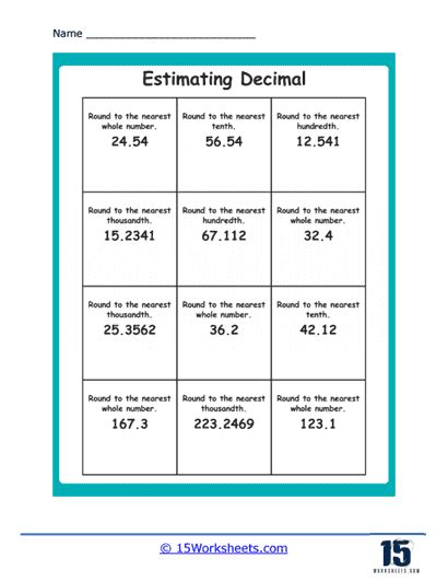 Web our printable estimating decimals and fractions worksheets have skills to round the fractions to the nearest whole numbers. Web this resource aims to practice estimating sums and differences between decimal amounts. The worksheet is broken into 5. Web 280 filtered results decimals show interactive only sort by multiplication with decimals worksheet comparing decimals. Web these worksheets include various types of exercises to help develop and enhance your ability to estimate decimal numbers. Web our printable estimating decimals and fractions worksheets have skills to round the fractions to the nearest whole numbers. Web on this page, you will find decimals worksheets on a variety of topics including comparing and sorting decimals, adding,.