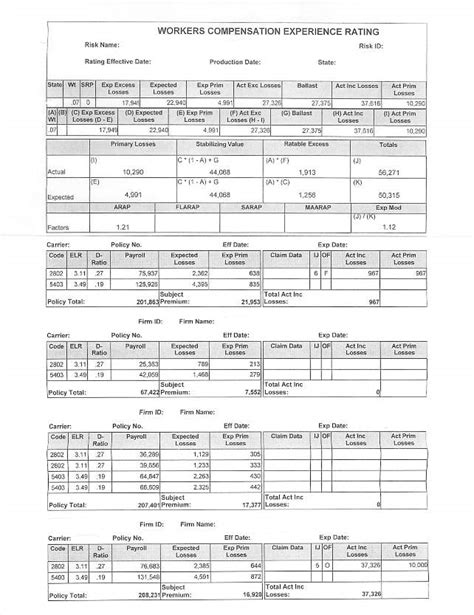 Workers Compensation Experience Modification Worksheet