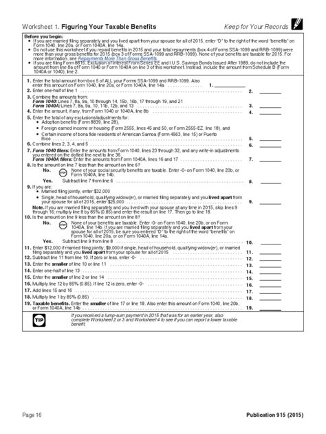 Web 2022 social security taxable benefits worksheet before you begin: Web internal revenue service publication 915 cat. 15320p social security and equivalent railroad retirement benefits for use in preparing 2021 returns get forms. Keep for your records publication 915 / v if you are married filing separately and you lived. Web publication 915 explains the federal income tax rules for social security benefits and equivalent tier 1 railroad retirement benefits. Web this publication explains the federal income tax rules for social security benefits and equivalent tier 1 railroad retirement benefits. It is prepared through the joint efforts of. Web if the person lived with their spouse for at least one day in the year, use the special procedure in worksheet 1 in irs publication 915, which results in 85%.