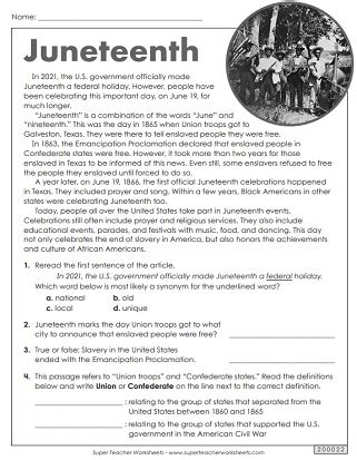Juneteenth Worksheets Pdf Free. Web here you will find lots of printable worksheets for teaching students about juneteenth. Web a large collection of juneteenth lesson plans and resources from share my lesson that includes printable worksheets, handouts,.