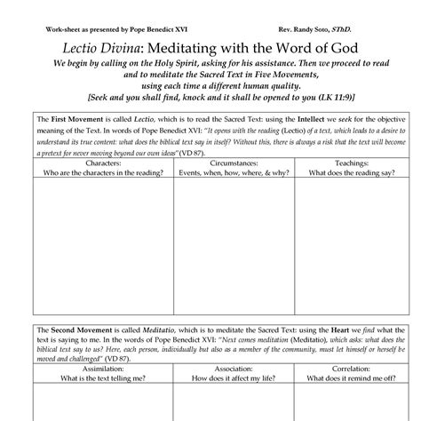 Lectio Divina Worksheet. Web lectio divina (latin for divine reading) is a traditional monastic practice of scriptural reading, meditation and. Web lectio divina is a form of meditation rooted in liturgical celebration that dates back to early monastic communities.