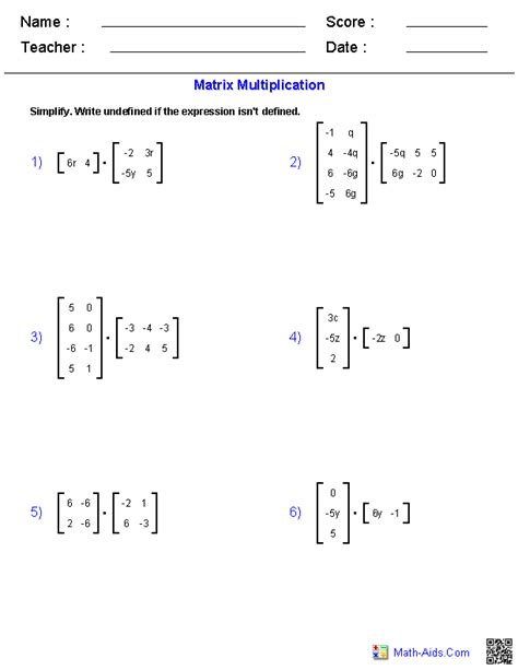 matrix worksheets 3 sections Matrix (Mathematics) Matrix Theory