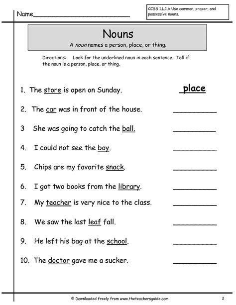 noun worksheets for elementary school printable free k5 learning