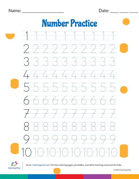 Number Practice Worksheets Free. Learn the numbers from one to ten.