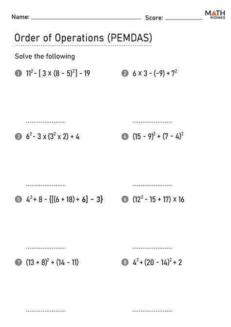 order of operations worksheets bodmas order of operations worksheets