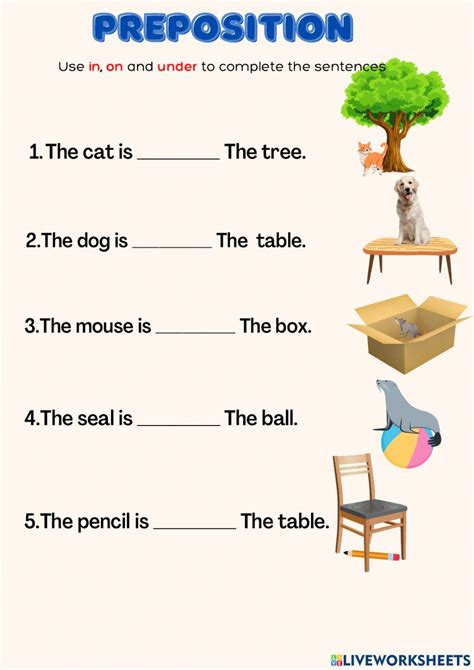 Preposition Worksheets for Kindergarten Kidpid