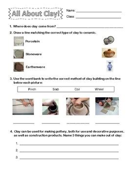 English worksheets Clay information