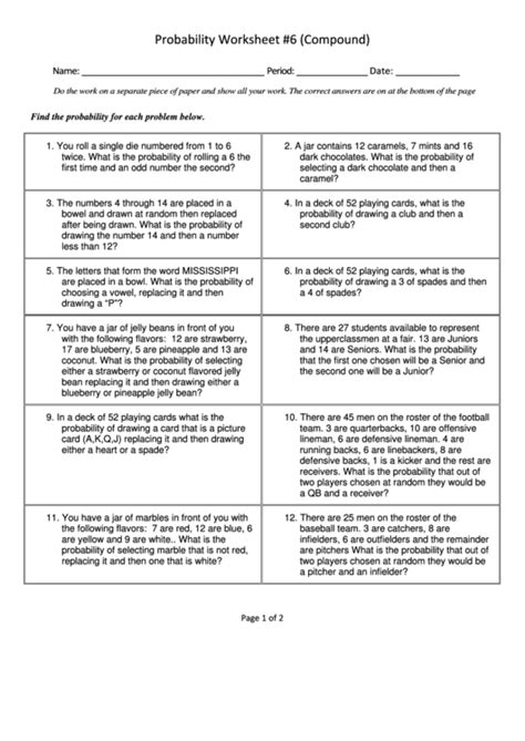 Fill in the six missing numbers. Web probability worksheets these printable math worksheets will help students learn about probability of random events. Web navigate through this assortment of printable probability worksheets that includes exercises on basic probability based on. Web find the probability for each problem below. You roll a single die numbered from 1 to 6. Fill in the six missing numbers. What is the probability of rolling an odd. Web the probability of a 7 is 1.
