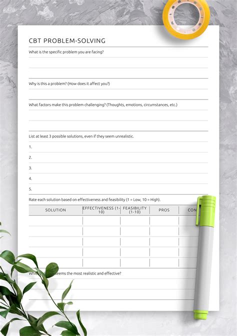 CBT Problem Solving Worksheet Editable Fillable Printable PDF