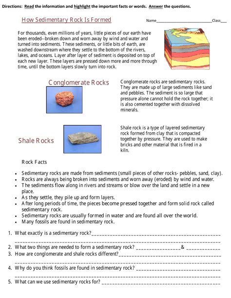 Sedimentary Rocks Worksheet Pdf. Clastic sedimentary rocks are composed of _____. Sedimentary rocks are made in the presence of water, whose pieces or sediments are cemented together.