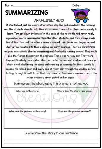 Example of Best Summarizing Worksheets Summarizing