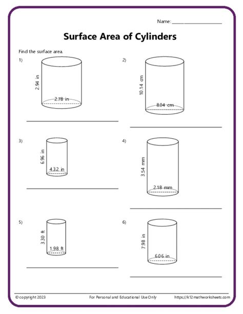 Surface Area Of Cylinders Worksheet Pdf. Web work out the surface area of the cylinder. Surface area of area of area of top = πr2 bottom = πr2 top + bottom area of a.