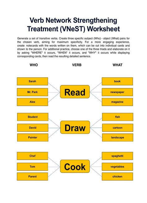Vnest verb Network Strengthening Treatment Speech Therapy Worksheet