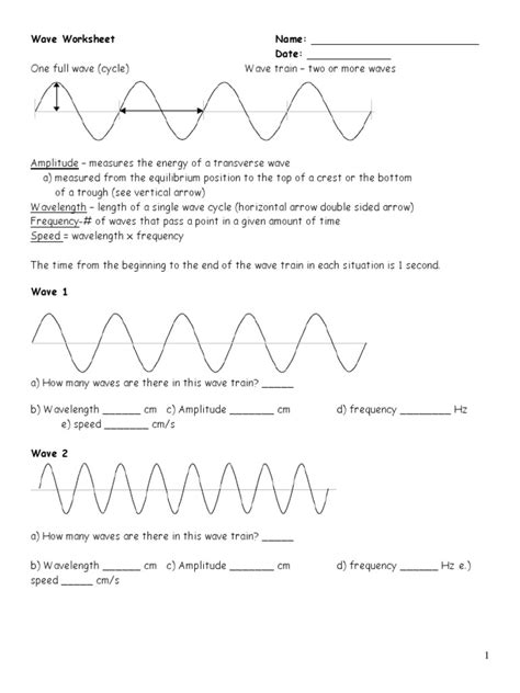 Wave Worksheet Pdf. The illustration below shows a series of transverse waves. Web 7 depends on what the wave is travelling through (e.g.
