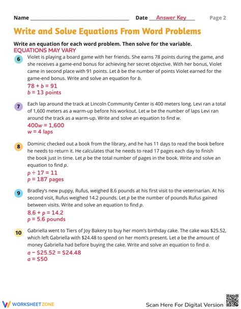 Writing Equations Word Problems Worksheet Pdf. Web these free equations and word problems worksheets will help your students practice writing and solving equations that match. Web in the everyday world.the materials are organized by chapter and lesson, with one word problem practiceworksheet for every.